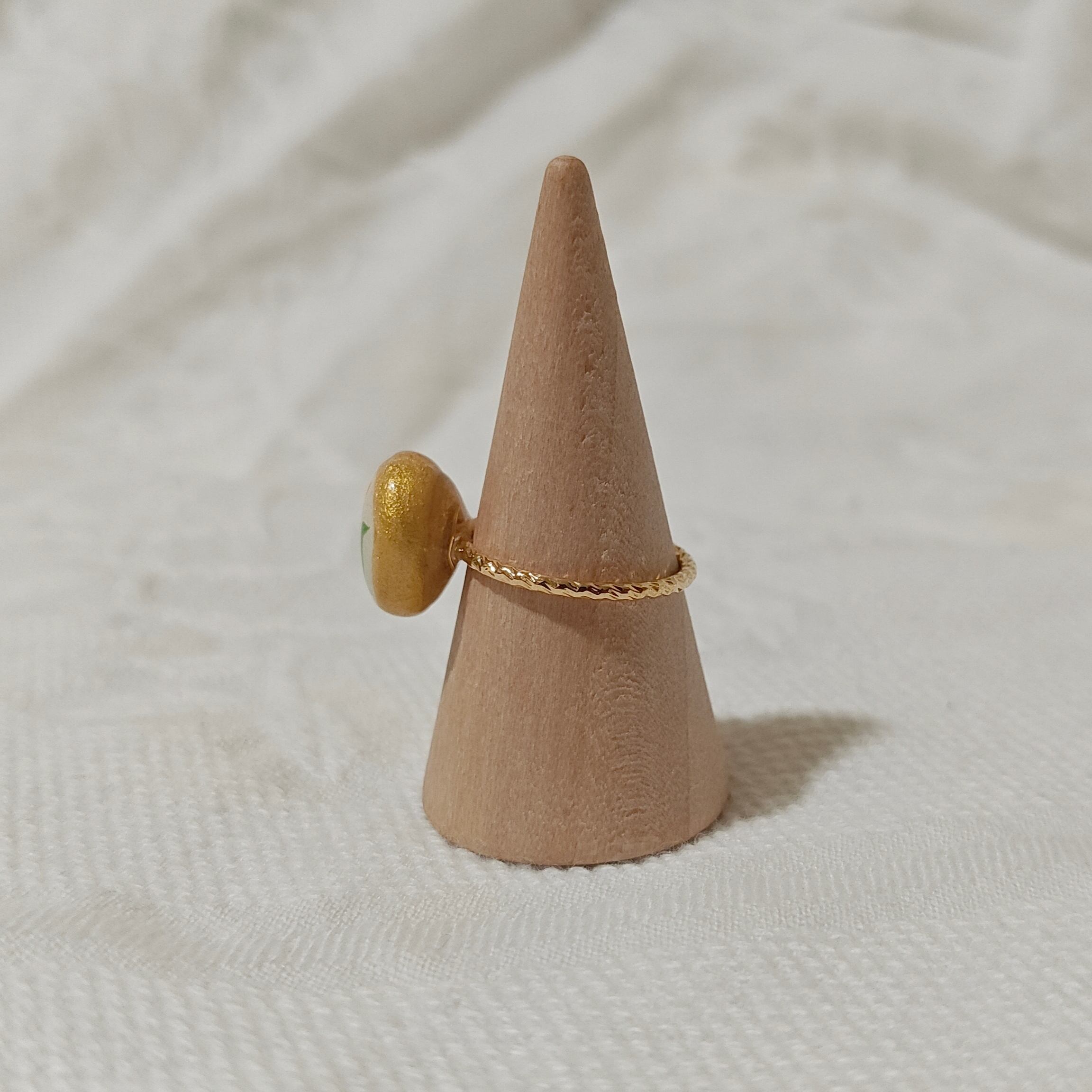クレイとアクリル絵の具を使用して手作りされたリングです。UVレジンでしっかりとコーティングされています。