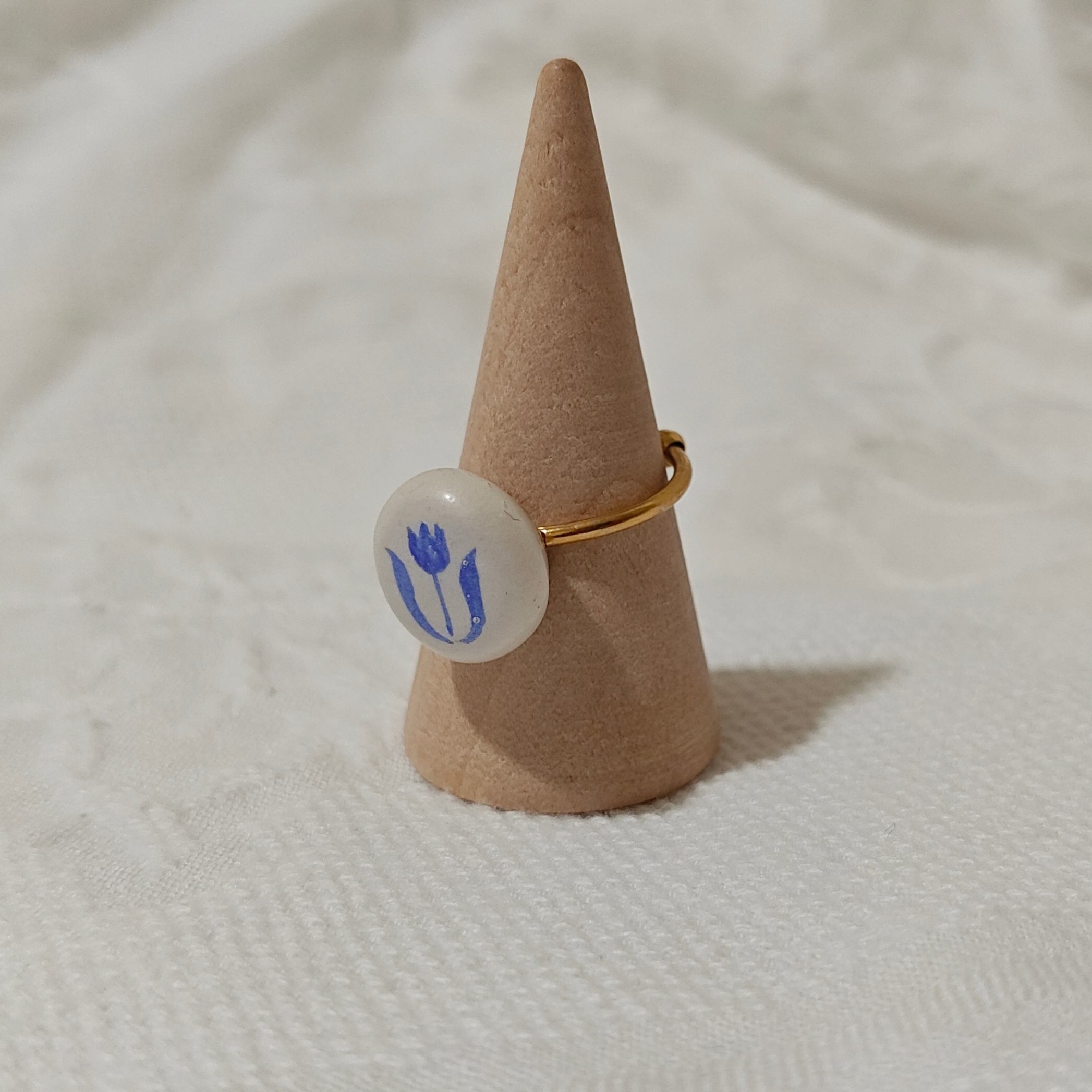 クレイとアクリル絵の具を使用して手作りされたリングです。UVレジンでしっかりとコーティングされています。